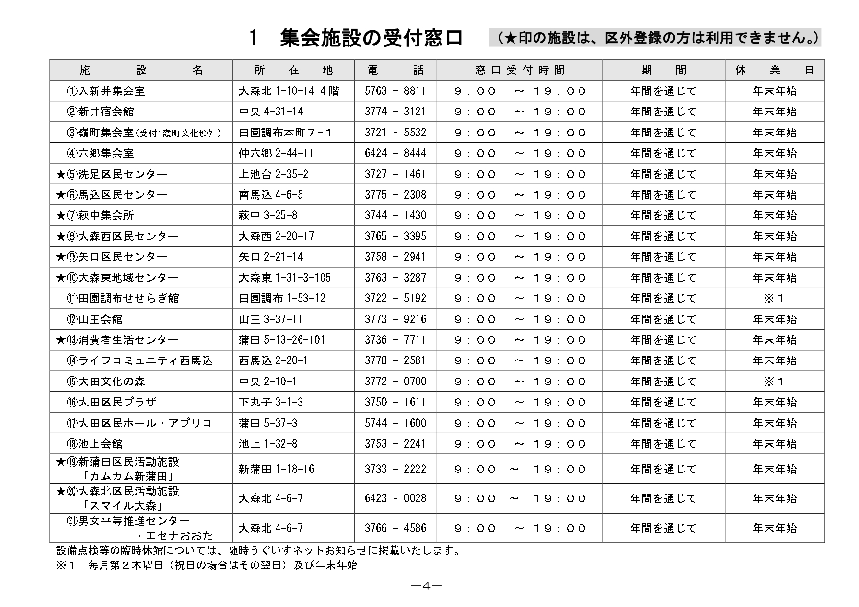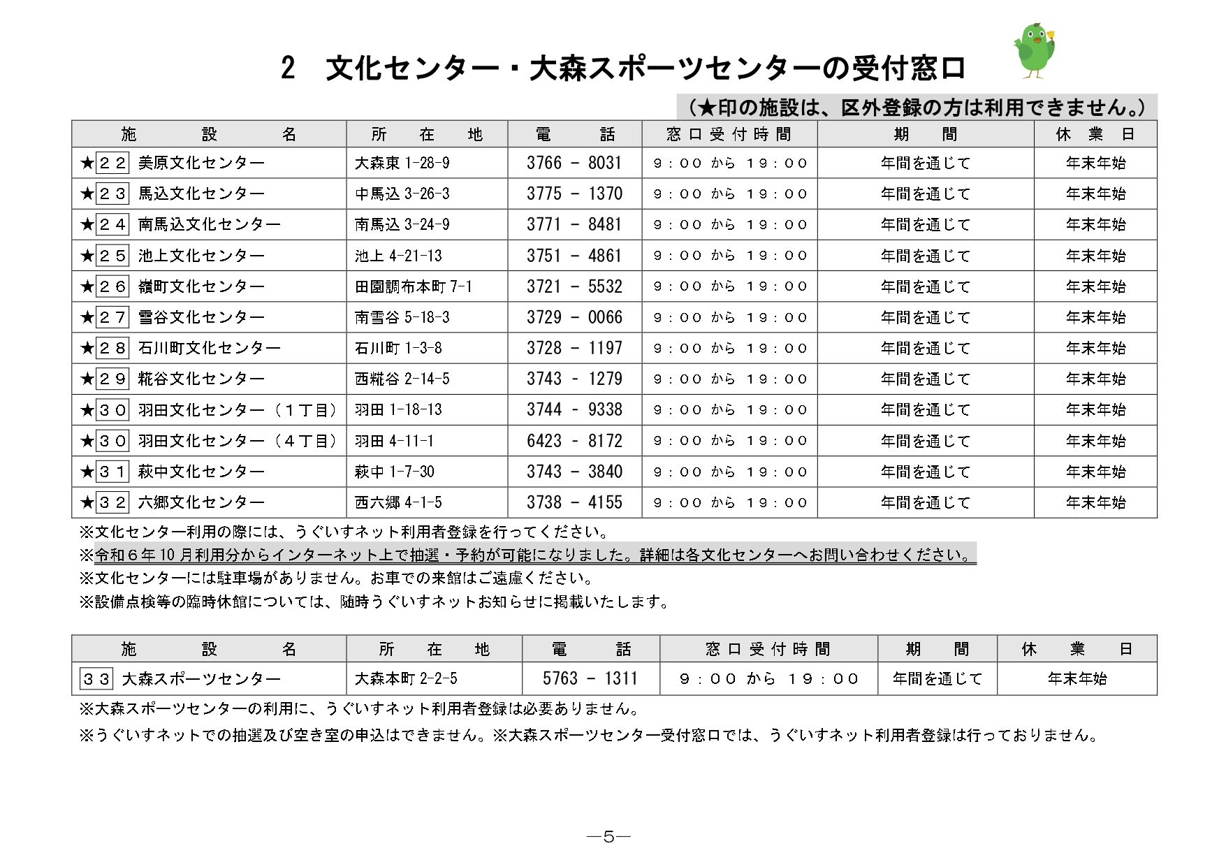 - 文化センター(五反田、荏原、東品川、旗の台、南大井)
