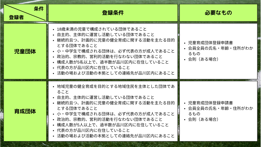 - 地域児童の健全育成を目的とする地域住民を主体とした団体であること